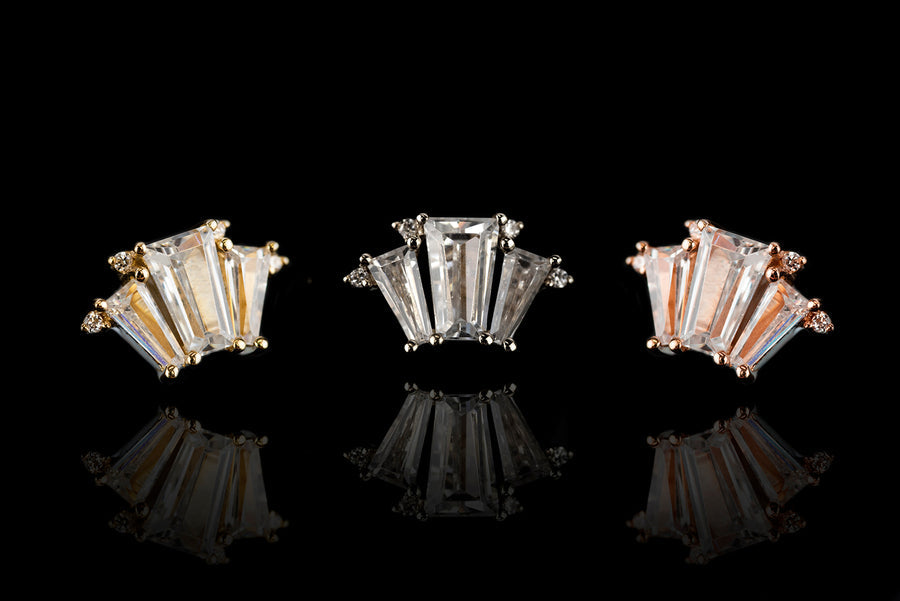 A trio of baguette stones (1 - 5x3mm, 2 - 4x2mm pear shaped CZ) with 4 - 0.8mm Swarovski stones in between.